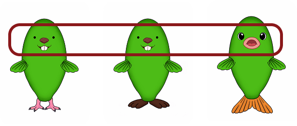 Toto nie je MIX. Element „tvár“ má dvakrát bobrie zúbky a raz kaprie ústa. Viete zmeniť jednu tvár tak, aby z trojičky bol MIX?